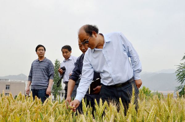 5月30上午,校长刘建林在小麦育种专家于浩世的陪同下,深入小麦试验田,调研我校小麦新品系“商麦065—10—16”和“商麦0613—12—3—2”的试种情况。校秦岭植物良种繁育中心主任王新军、生物医药与食品工程学院副院长张向东、校办公室副主任鱼小强陪同调研。