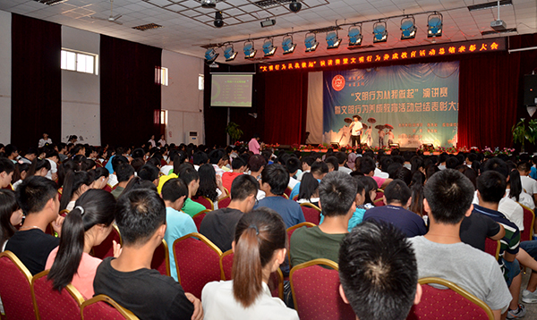 6月18日,我校在大学生活动中心举办“文明行为从我做起”主题演讲赛,召开文明行为养成教育活动总结表彰大会,表彰活动先进集体和个人。校党委副书记左晓民参加活动,并为获奖集体及个人颁奖。
