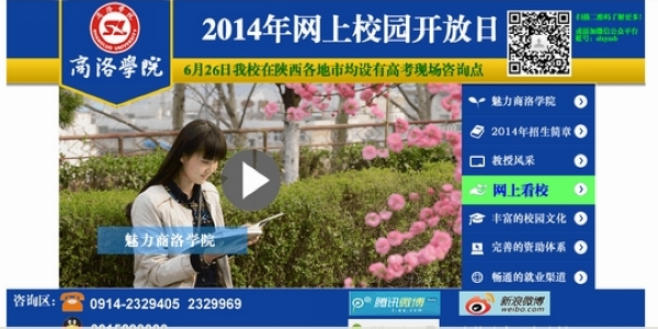 该平台将以图片、文字及视频形式为广大报考学生介绍我校校园风景、师资力量、校园文化、学生资助和就业渠道等信息。报考学生可通过我校“网上看校”链接自行浏览学校各地标建筑3D模型图和实景照片,以便更直观和生动地了解、体验校园环境。此外,该平台通过QQ、微博、微信等新媒体实现了更加畅通的在线咨询服务,报考学生可与学校招生工作人员进行实时在线交流,第一时间获得所需要的高考志愿填报信息。