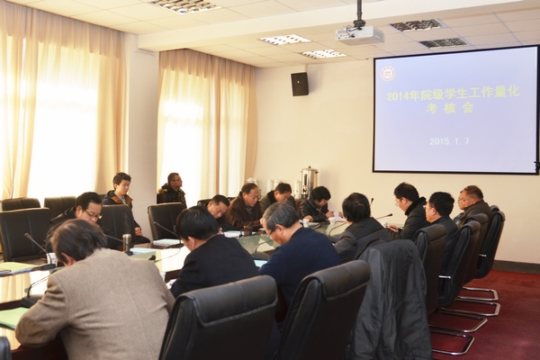1月7日,学校召开2014年学生工作量化考核会议,对各二级学院2014年度学生工作进行量化考核,评选出先进集体和个人。校党委副书记左晓民、纪委书记王思怀、副校长魏书堂及各学院党总支负责人参加了会议。考核会由学生处处长石启英主持。