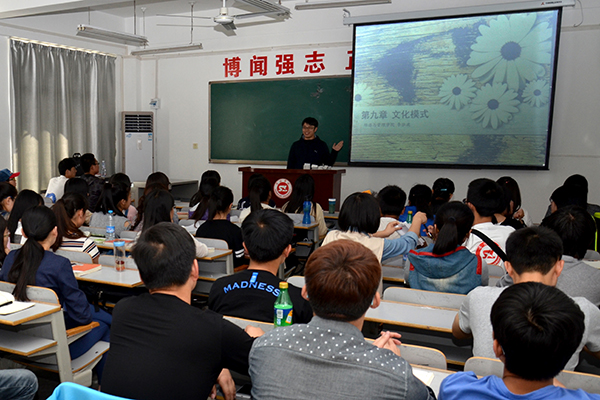 台湾南开科技大学学子卢瑞林在经济与管理学院《文化学教程》课上介绍台湾文化
