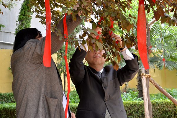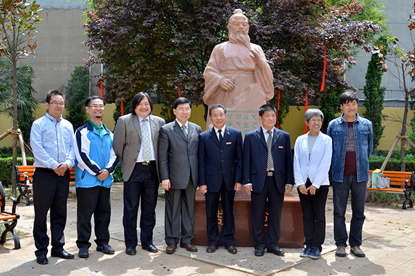 在纪委书记王思怀与艺术学院院长刘凤林等的陪同下,许聪鑫一行参观了西门艺术长廊并出席了仓颉像揭幕仪式。许聪鑫与王思怀一同为仓颉像揭幕。范新会在揭幕仪式上指出,商洛学院作为商洛地区唯一一所本科院校,肩负着传承中华民族优秀文化的历史使命,两校一同为仓颉像揭幕,充分体现了海峡两岸炎黄子孙对中华文化的高度认同和充分信任。我校将继承仓颉造字的首创精神,加快发展步伐,为商洛地区的社会发展提供文化引领,希望双方紧密携手,加强合作、共同发展,为社会进步、文化传承作出应有的贡献。许聪鑫指出,很高兴能参加仓颉像的揭幕仪式,商洛是一个非常具有人文气息的地方,仓颉像的塑立体现了商洛学院对中华文化的保存与敬仰,祝福商洛学院在商洛这片文化底蕴深厚的热土上取得更加长足的发展。