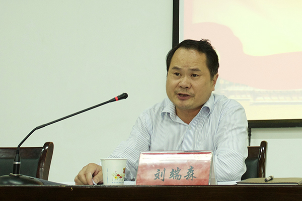 刘端森主讲了题为《践行“三严三实”是党对我们的基本要求》的党课。他围绕“三严三实”提出的背景、必要性和重要性,“三严三实”的科学内涵以及如何践行“三严三实”等三个方面进行了详细阐述。他指出,在全面深化改革的今天,我国面临的国内外形势依然错综复杂,支撑改革发展的要素条件也在发生深刻变化,全体党员及各级领导干部必须以“三严三实”来要求和对照自己,自觉践行“三严三实”,深入推进作风建设,做一名人民群众满意的党员好干部。