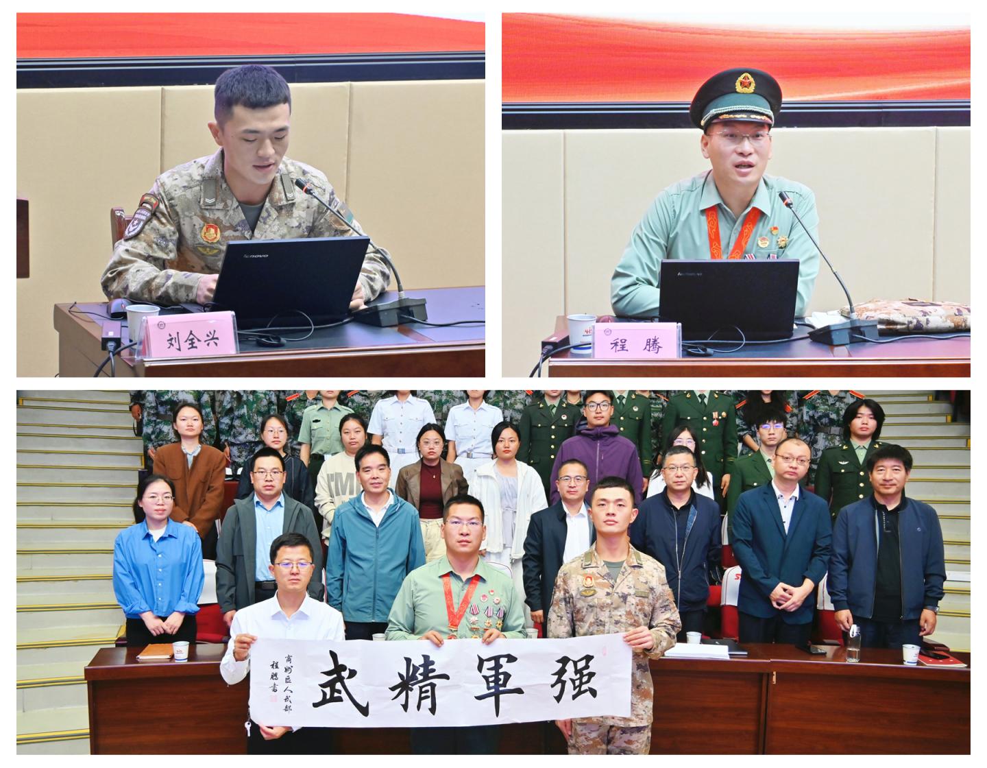 为增强广大学生的国防意识,厚植爱国主义情怀,全面营造大学生参军报国的浓厚氛围,9月20日,我校邀请商洛籍海军陆战队退役军人、九三阅兵预备役部队方队受阅战士刘全兴,退役军人、商州区夜村国有林场组织委员兼资源股股长、九三阅兵观礼嘉宾程腾为2025级新生作国防教育专题讲座。