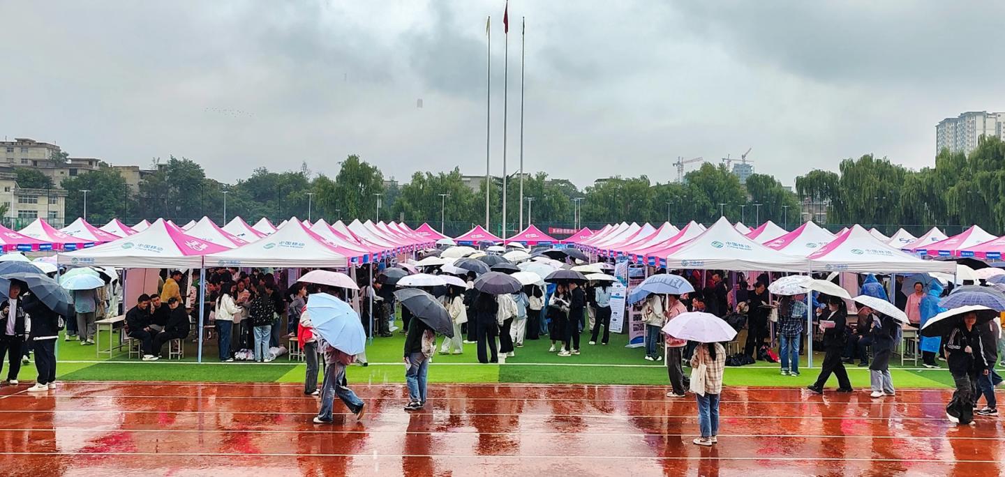 招聘会共邀请浙江泽悦信息科技有限公司、江苏瑞尔隆鼎实业有限公司、西安瑞联新材料股份有限公司等120余家用人单位来校参会,为毕业生提供涵盖多个行业的有效就业岗位4000余个。尽管秋雨连绵,但现场组织有序、推进顺利,毕业生与用人单位互动积极、气氛热烈。据统计,我校2143名2026届毕业生及400余名商洛籍退役士兵、未就业毕业生参加招聘会,现场投递简历2902份,初步达成就业意向214人。