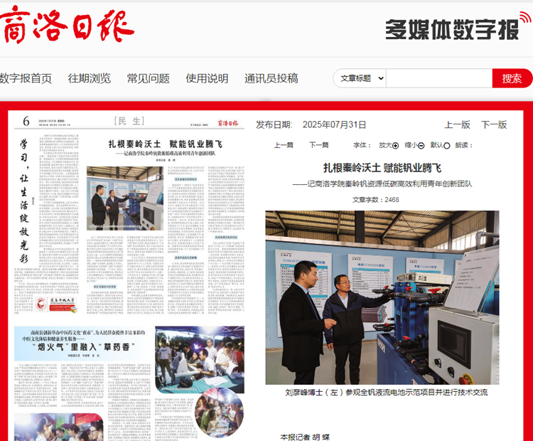 当前,商洛以“打造千亿级钒产业集群”为目标,向“中国钒都”的战略愿景全力奋进。商洛学院秦岭钒资源低碳高效利用青年创新团队深度对接这一发展战略,精准聚焦钒系合金研发、全钒液流电池技术突破、钒尾矿综合利用等核心领域,以一系列扎实举措驱动产业升级——与企业携手共建研发中心、聚焦多元中间合金及储能合金关键技术联合攻关、加快钒电解液中试生产线建设、推进钒尾矿的绿色建材研究,促进科研成果从实验室走向产业化应用;创新产学研融合模式,与企业共建教学实验室、实践教学基地及就业创业基地,为产业精准输送“懂技术、会应用”的复合型人才。